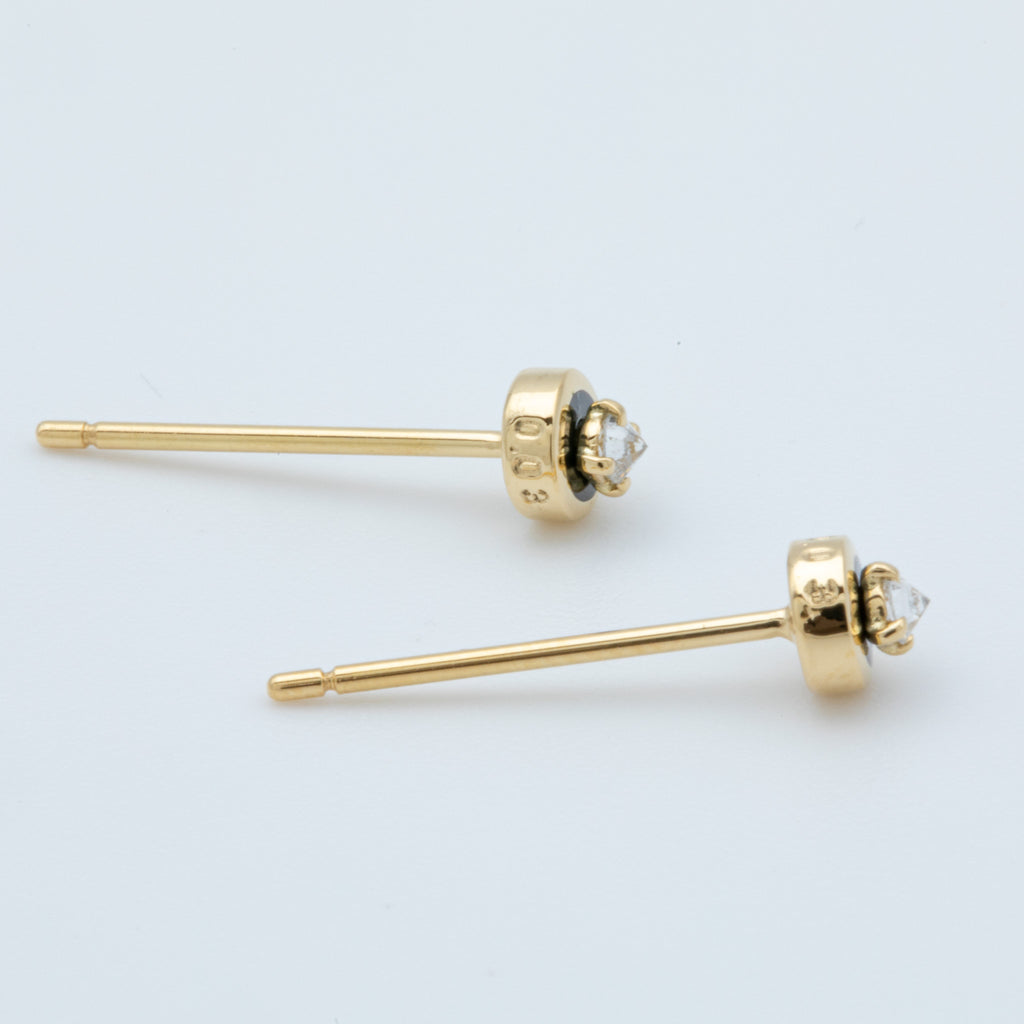 刀の鍔などに古くから使われていた、赤銅(Shakudo)が使われています。他の石や塗料と違い、奥ゆかしく、どこか品のある日本古来の黒が台座を映しています。目をモチーフとした魔除けのデザイン。そのの真ん中にあるのはダイヤモンドとなり、逆さまにセッティングされています。